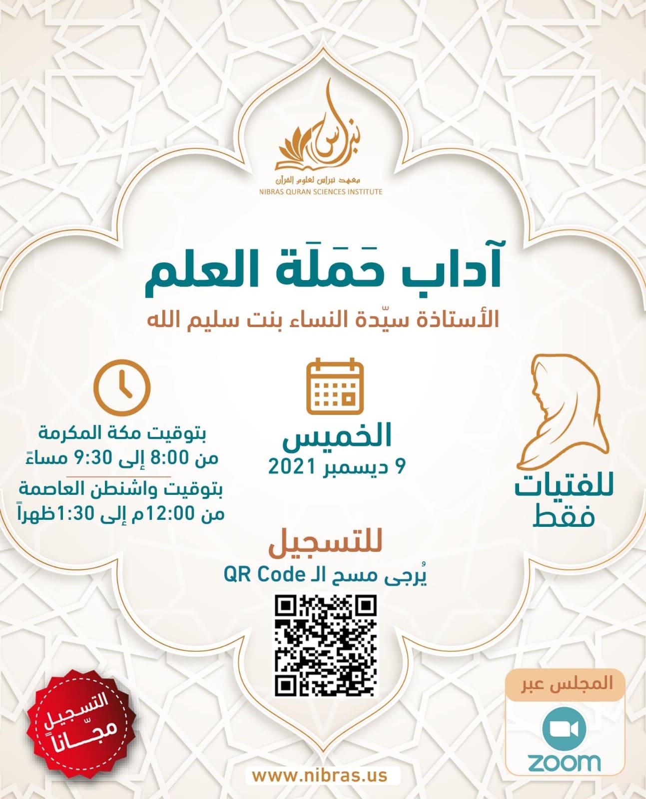 Join Ustadhah Sayyidah al-Nisa bint Salim Allah in this women’s-only session on Adab Hamat al-‘Ilm. Learn the timeless principles of humility, sincerity, and noble conduct that define true seekers and carriers of sacred knowledge.