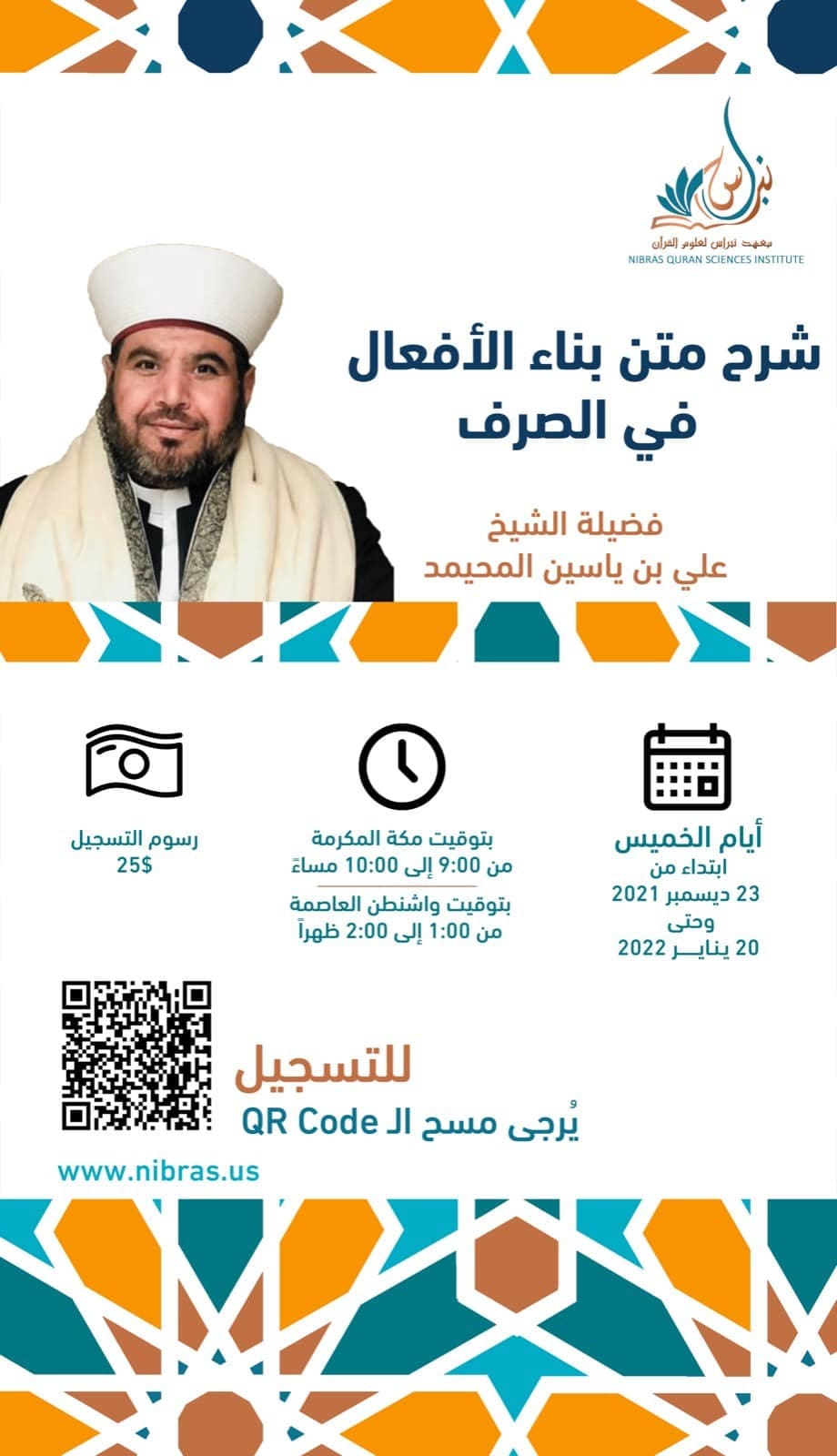 Learn foundational Arabic grammar with Shaykh Ahmad Al-Homsi — every Tuesday at Nibras Institute.